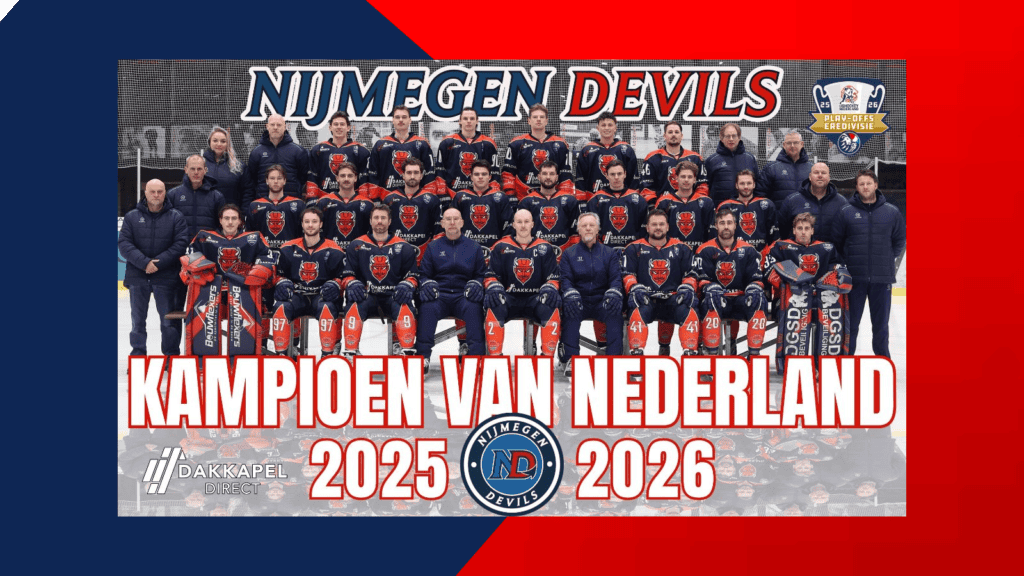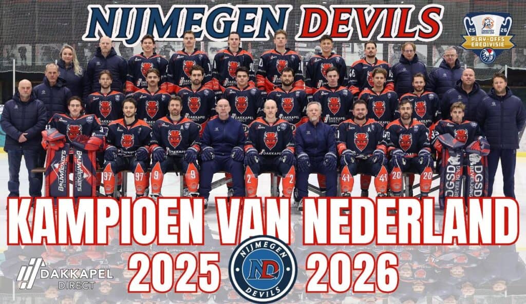 De laatste zoemer van het seizoen klinkt om een uurtje of 23:00 en daarmee staat het vast: De Nijmegen Devils zijn Kampioen van Nederland! 🇳🇱