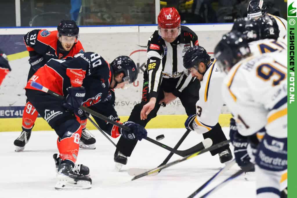 Dakkapel Direct Devils Nijmegen keek na twintig minuten spelen tegen Leeuwarden tegen een verdiende 0-3 achterstand aan. Dankzij twee goals per volgende periode sleepte Devils uiteindelijk toch de volle buit binnen. Mitch Bruijsten en Derek Knetter hadden ieder een goal en een assist, Boris van Bergen pikte twee assists op.