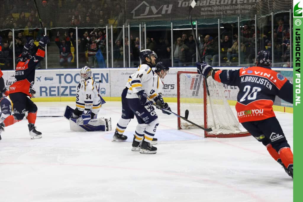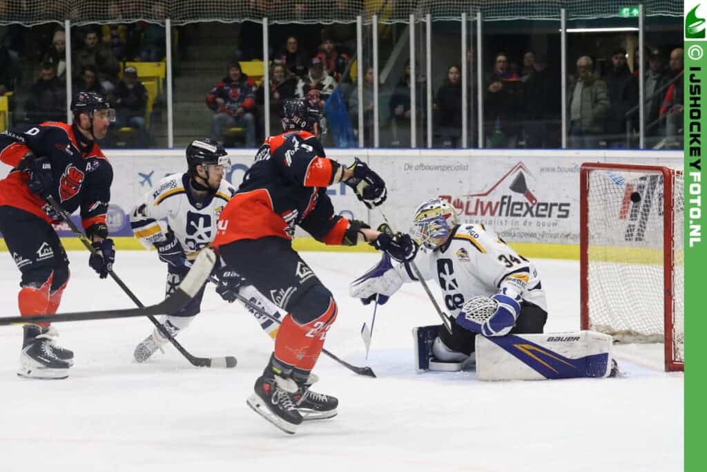Uiteindelijk kwam de zege echter toch in Nijmegen terecht. Derek Knetter zorgde na drie minuten spelen in de slotperiode met een prima schot voor de gelijkmaker en zeven minuten voor tijd was het Boris van Bergen die met een mooie schaatsactie de winnende goal van Mitch Bruijsten voorbereidde. De forward van Devils schoot de puck in de bovenhoek en liet zo de Finse doelman van Leeuwarden kansloos.