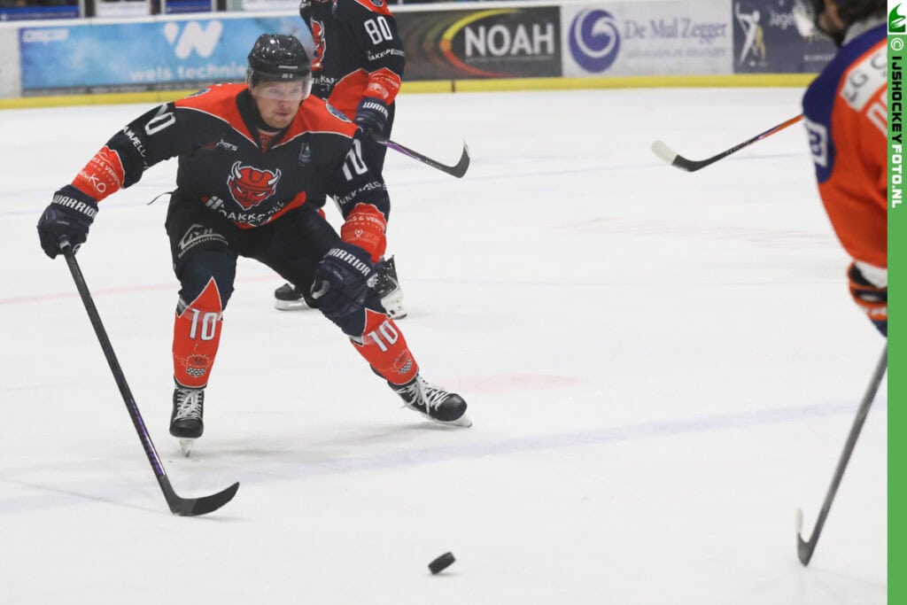 De coach was ook bijzonder te spreken over doelman Juliën van Nes. Die voorkwam vooral in de eerste periode een grotere achterstand voor Devils. Eerst stopte hij een penaltyshot van Niels Lemans en in de slotminuut moest hij een 1-op-1-uitbraak van Rowan Miller onschadelijk maken. Eerder in de periode had diezelfde Lemans zijn team wel op voorsprong gezet, maar een handig schot van Martynas Grinius had dat ongedaan gemaakt.