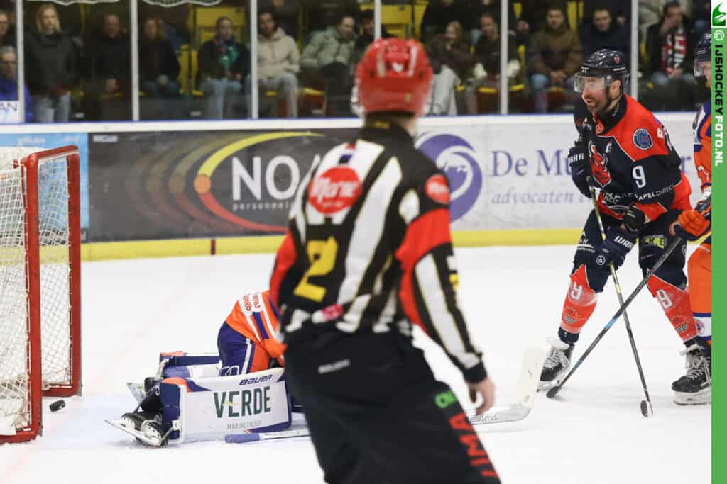 Devils kreeg al vroeg in de wedstrijd een prima kans via Makar Korotchenko, die alleen op het doel van Rowan Delil mocht afschaatsen, maar door de oud-goalie van Geleen werd gestopt. Ook Levi Houkes kreeg een goede kans, terwijl Juliën van Nes in het doel bij Nijmegen ook nog kansen van Kemphanen onschadelijk moest maken. Hij zou het duel uiteindelijk eindigen met 17 saves op 20 schoten, waaronder cruciale reddingen in de slotfase. Delil stopte 42 van de 46 schoten van Nijmegen.